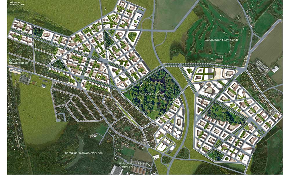 Первый – Schönefeld – многофункционален. В него войдут административные и офисные здания международных компаний, жилые кварталы с сопутствующей инфраструктурой, а также логистические и эко-производственные комплексы. Второй подцентр – Großziethen – будет отдан под жилую преимущественно низкоэтажную и индивидуальную застройку и необходимую для комфортной жизни инфраструктуру. И, наконец, третий – Danelewitz+GrossKienitz – многофункциональный жилой район, организованный в контексте двух уже существующих населённых пунктов Danelewitz и GrossKienitz.